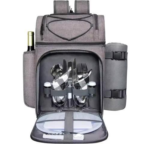กระเป๋าใส่ตะกร้าปิคนิคหุ้มฉนวนกันน้ำสำหรับ4คนชุดกระเป๋าเป้ปิกนิกสีตามสั่ง