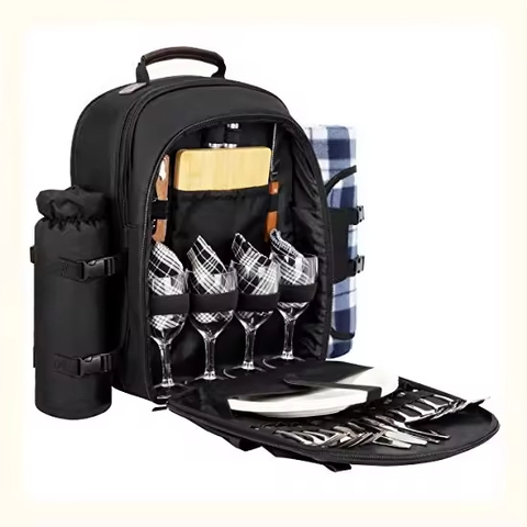 กระเป๋าเป้ใส่ไวน์เก็บความเย็นสำหรับครอบครัว4คนกระเป๋าปิกนิกแบบพกพาความจุขนาดใหญ่