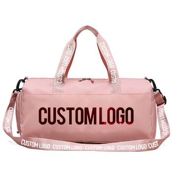 Toptan moda tasarımcısı spor Logo ile spor eşya torbası özel Polyester gecede Tote haftasonu pembe seyahat silindir çanta